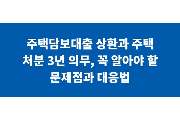 주택담보대출 상환과 주택 처분 3년 의무, 꼭 알아야 할 문제점과 대응법