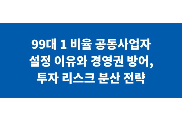 99대 1 비율 공동사업자 설정 이유와 경영권 방어, 투자 리스크 분산 전략