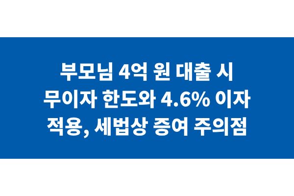 부모님 4억 원 대출 시 무이자 한도와 4.6% 이자 적용, 세법상 증여 주의점