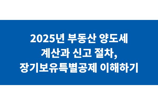 2025년 부동산 양도세 계산과 신고 절차, 장기보유특별공제 이해하기