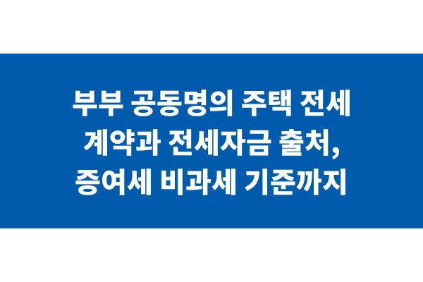 부부 공동명의 주택 전세 계약과 전세자금 출처, 증여세 비과세 기준까지