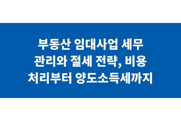 부동산 임대사업 세무 관리와 절세 전략, 비용 처리부터 양도소득세까지