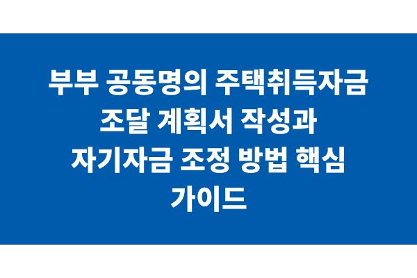 부부 공동명의 주택취득자금 조달 계획서 작성과 자기자금 조정 방법 핵심 가이드