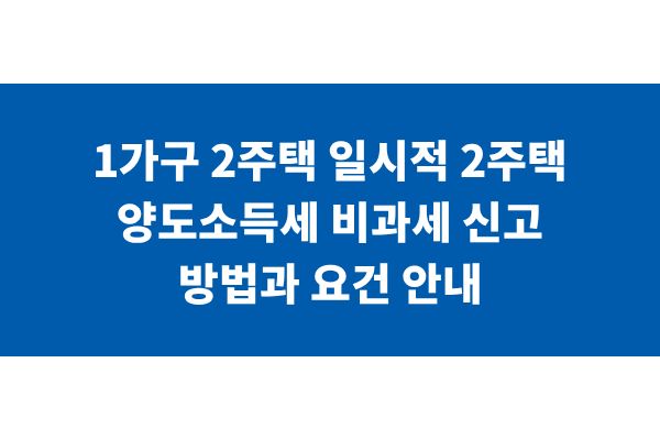 1가구 2주택 일시적 2주택 양도소득세 비과세 신고 방법과 요건 안내