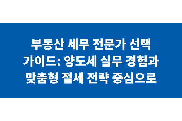 부동산 세무 전문가 선택 가이드: 양도세 실무 경험과 맞춤형 절세 전략 중심으로