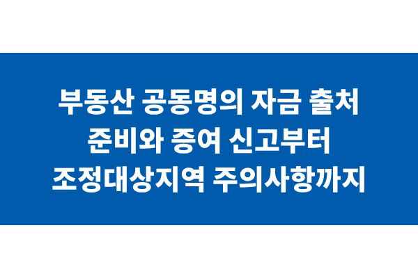 부동산 공동명의 자금 출처 준비와 증여 신고부터 조정대상지역 주의사항까지