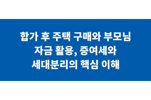합가 후 주택 구매와 부모님 자금 활용, 증여세와 세대분리의 핵심 이해