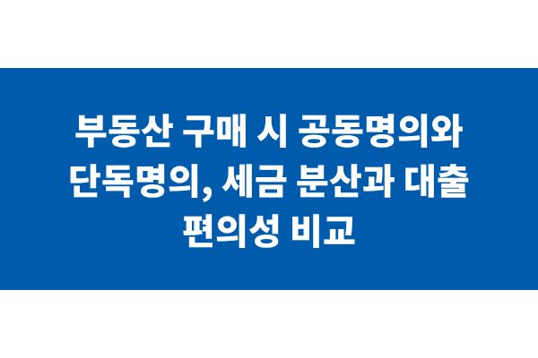 부동산 구매 시 공동명의와 단독명의, 세금 분산과 대출 편의성 비교