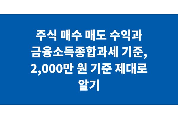 주식 매수 매도 수익과 금융소득종합과세 기준, 2,000만 원 기준 제대로 알기