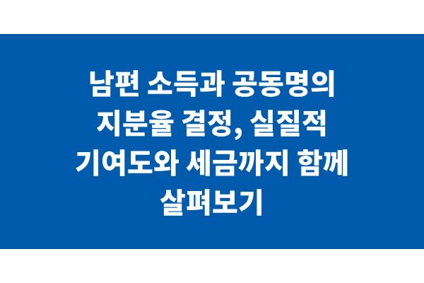 남편 소득과 공동명의 지분율 결정, 실질적 기여도와 세금까지 함께 살펴보기