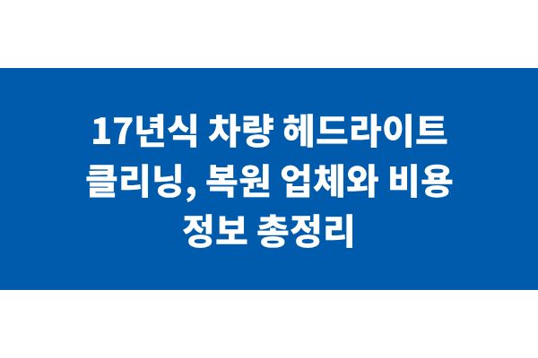 17년식 차량 헤드라이트 클리닝, 복원 업체와 비용 정보 총정리