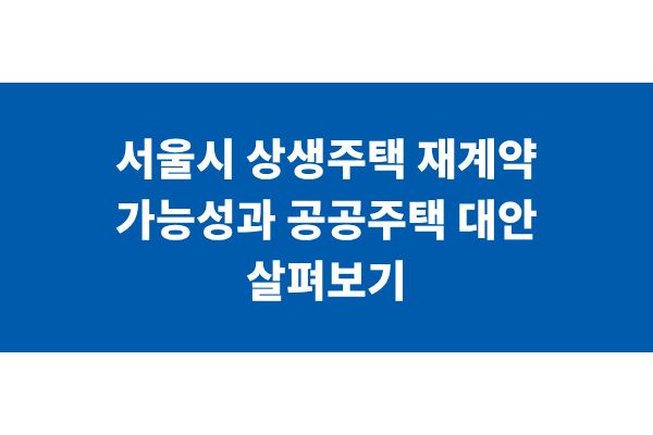 서울시 상생주택 재계약 가능성과 공공주택 대안 살펴보기