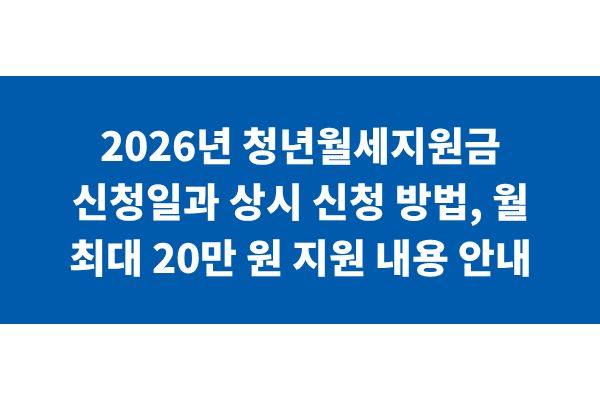 2026년 청년월세지원금 신청일과 상시 신청 방법, 월 최대 20만 원 지원 내용 안내