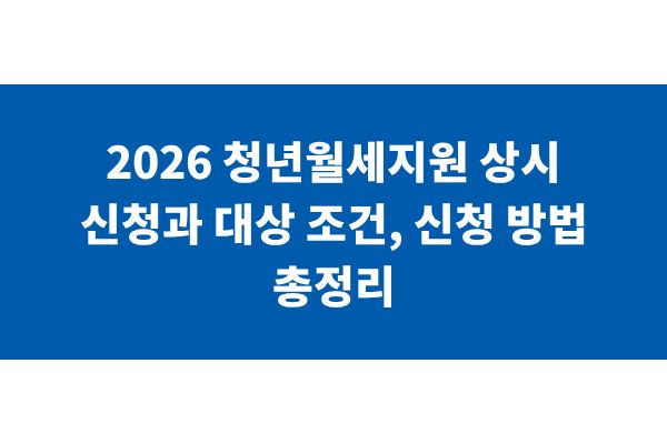 2026 청년월세지원 상시 신청과 대상 조건, 신청 방법 총정리