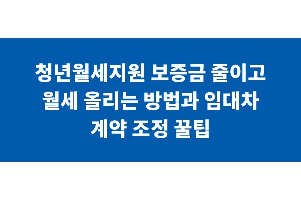 청년월세지원 보증금 줄이고 월세 올리는 방법과 임대차 계약 조정 꿀팁