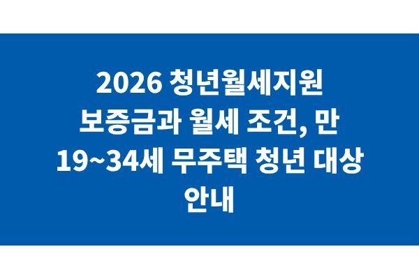 2026 청년월세지원 보증금과 월세 조건, 만 19~34세 무주택 청년 대상 안내