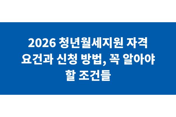 2026 청년월세지원 자격 요건과 신청 방법, 꼭 알아야 할 조건들