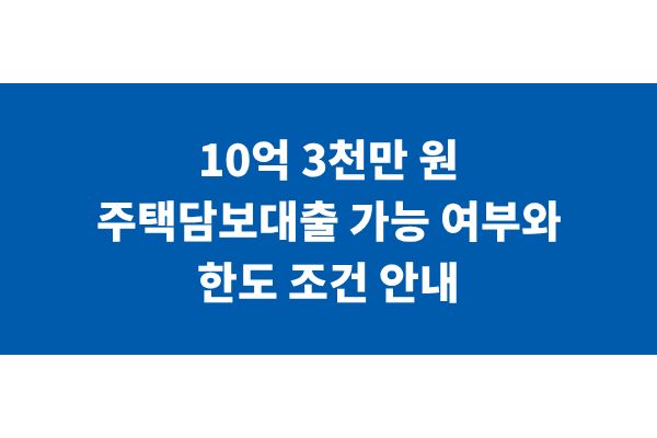10억 3천만 원 주택담보대출 가능 여부와 한도 조건 안내