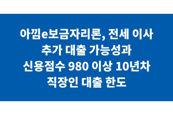 아낌e보금자리론, 전세 이사 추가 대출 가능성과 신용점수 980 이상 10년차 직장인 대출 한도