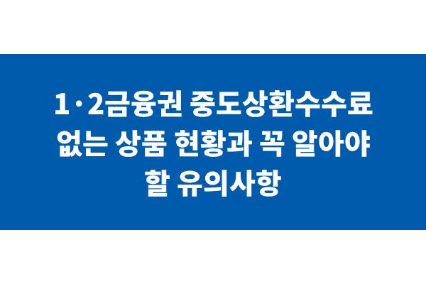 1·2금융권 중도상환수수료 없는 상품 현황과 꼭 알아야 할 유의사항