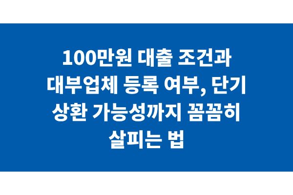 100만원 대출 조건과 대부업체 등록 여부, 단기 상환 가능성까지 꼼꼼히 살피는 법