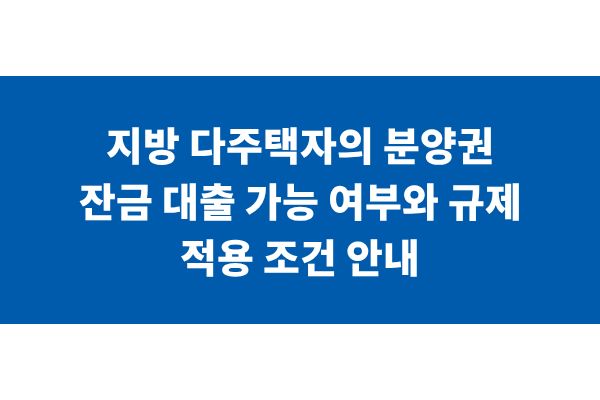 지방 다주택자의 분양권 잔금 대출 가능 여부와 규제 적용 조건 안내