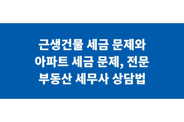 근생건물 세금 문제와 아파트 세금 문제, 전문 부동산 세무사 상담법