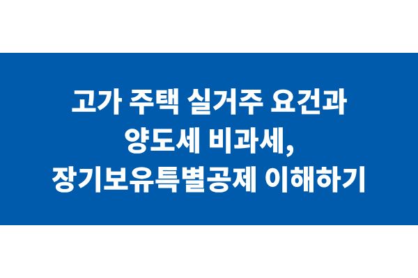 고가 주택 실거주 요건과 양도세 비과세, 장기보유특별공제 이해하기