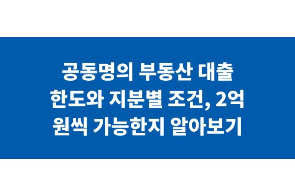 공동명의 부동산 대출 한도와 지분별 조건, 2억 원씩 가능한지 알아보기