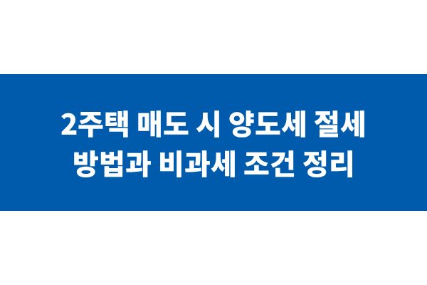 2주택 매도 시 양도세 절세 방법과 비과세 조건 정리