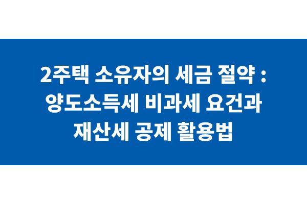 2주택 소유자의 세금 절약 : 양도소득세 비과세 요건과 재산세 공제 활용법