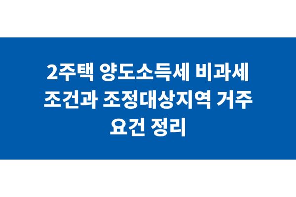 2주택 양도소득세 비과세 조건과 조정대상지역 거주 요건 정리