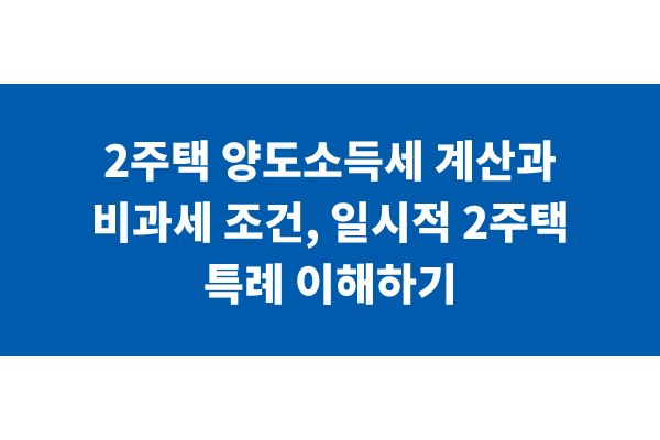2주택 양도소득세 계산과 비과세 조건, 일시적 2주택 특례 이해하기