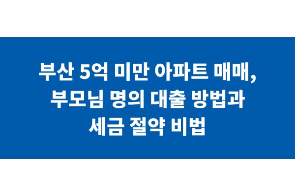 부산 5억 미만 아파트 매매, 부모님 명의 대출 방법과 세금 절약 비법
