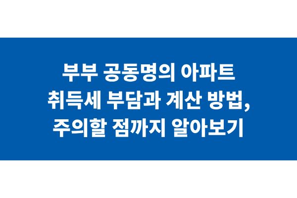 부부 공동명의 아파트 취득세 부담과 계산 방법, 주의할 점까지 알아보기